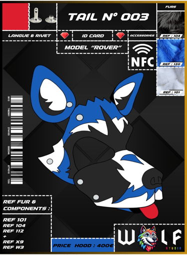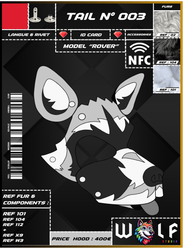Après avoir sélectionné un modèle de Tail à personnaliser sur notre boutique en ligne "wolf-studio.fr", il est temps de choisir tes couleurs de fourrures et de reporter les "REF:" correspondantes dans la fiche du produit que tu as choisi. Ces références permettront de personnaliser chaque détail de ta création.