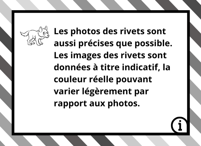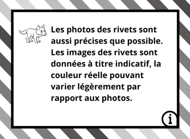 Chaque rivets possèdent sa propre référence "REF:". Il est important de reporter ces "REF:" dans la fiche produit en attribuant les indications du schéma à une référence spécifique ci-dessous.