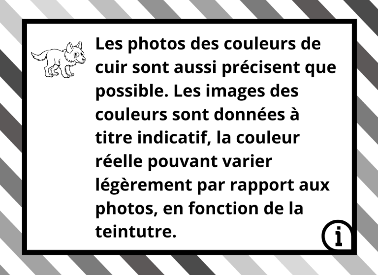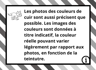 Après avoir sélectionné un modèle de "Masque Zoans" à personnaliser sur notre boutique en ligne "wolf-studio.fr", il est temps de choisir tes couleurs de cuir et de reporter les "REF:" correspondantes dans la fiche du produit que tu as choisi. Ces références permettront de personnaliser chaque détail de ta création.