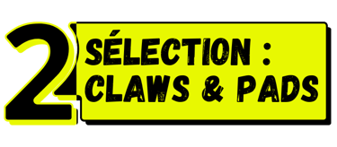 Une fois vos couleurs de fourrures choisi et sélectionnées dans la fiche produit il faut ensuite personnaliser les Griffes ( CLAWS ) et les Coussinets ( PADS ) de vos pattes en choisissant les coloris de tissus Minky qui vous plaisent.
