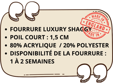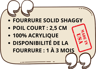 Toutes les options de fourrure présentées ci-dessous appartiennent à la catégorie "SHAGGY", ayant toutes des textures de poils similaires afin de pouvoir être harmonieusement associées entre elles.
