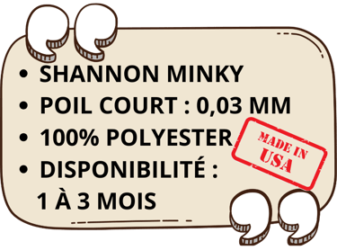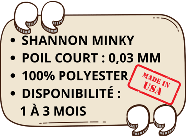 Nous collaborons notre partenaires américain pour notre index de couleurs en Minky. Toutes les options de tissus Minky présentées ci-dessous appartiennent à la catégorie "SHANNON", ayant toutes des textures de poils similaires afin de pouvoir être harmonieusement associées entre elles.