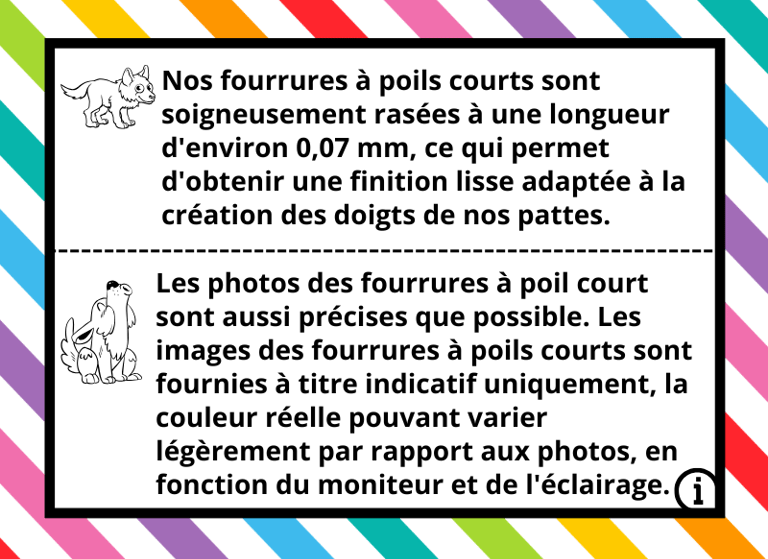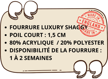 Dans de rares cas, des retards peuvent survenir en raison de ruptures soudaines de stock chez nos fournisseurs pour certaines références de fourrure. Si cela devait arriver, nous vous tiendrons informé sous un délai maximum de 3 semaines après la validation de la commande. Dans ce cas, le délai de fabrication pourrait atteindre un maximum de 5 mois.